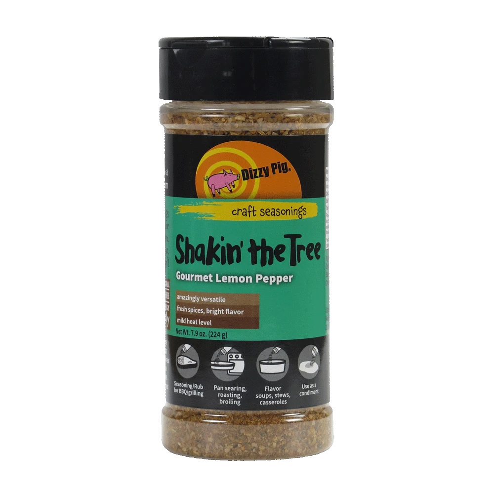 Dizzy Pig’s answer to foods that need that fresh zingy flavor and cooks who want to get it without squeezing three pounds of lemons to do so. We bring you the true, tangy flavor of citrus in this rub, courtesy of real lemon zest. Sharp and citrusy, Shakin’ the Tree is balanced enough to complement milder cuts of meat & chicken, scallops, pork tenderloin, shrimp and fish & and flavorful enough to dress up asparagus and broccoli in high style. With bright lemon notes and coriander goodness, and a flavor profile calculated to appeal to almost everyone, this seasoning is simply too versatile NOT to have in your pantry.