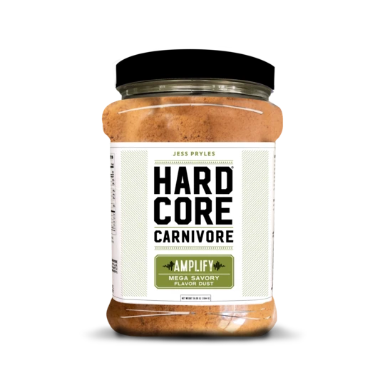 Hardcore Carnivore Amplify turns up the savory volume and intensifies the flavor of your food. This MSG-free seasoning is designed to provide an extra boost of umami to anything you sprinkle it on. Use Amplify on it’s own as a finishing powder or in conjunction with your favorite rub for an extra boost of savory flavor. Amplify can be used to create savory dips, upgrade a roast chicken, sprinkle on fries, dust over eggs and any other dishes needing a little savory enhancement
